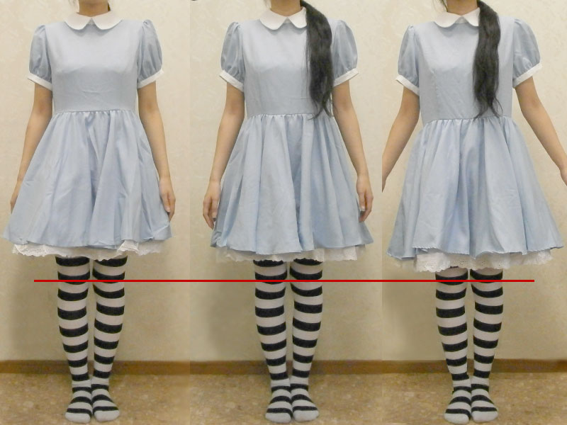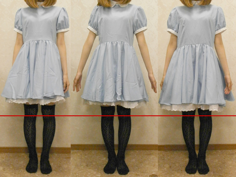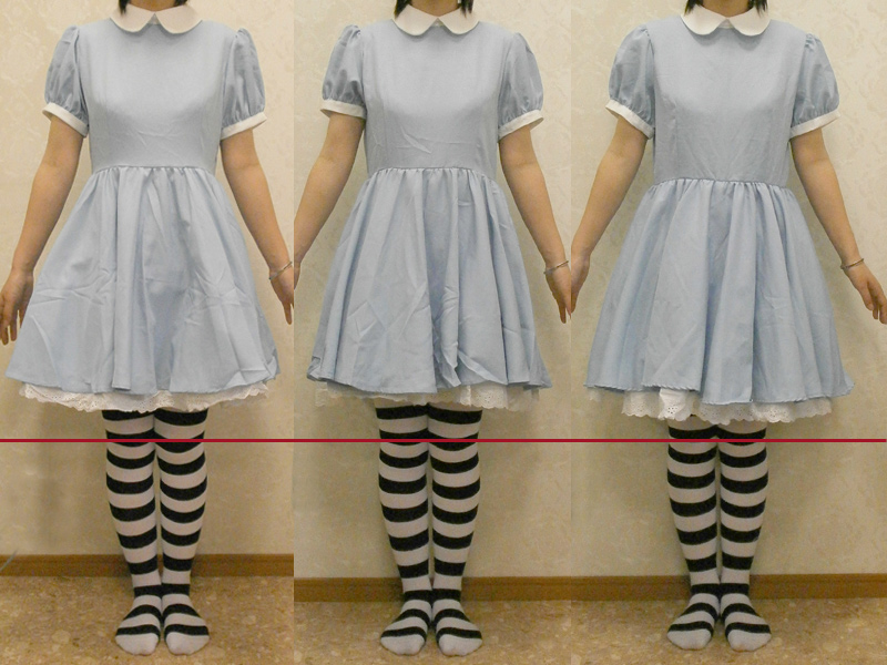 Sサイズ→スカートが短い。スカートの中が見えそうで不安になる。腕を動かしたとき多少窮屈な感じ。